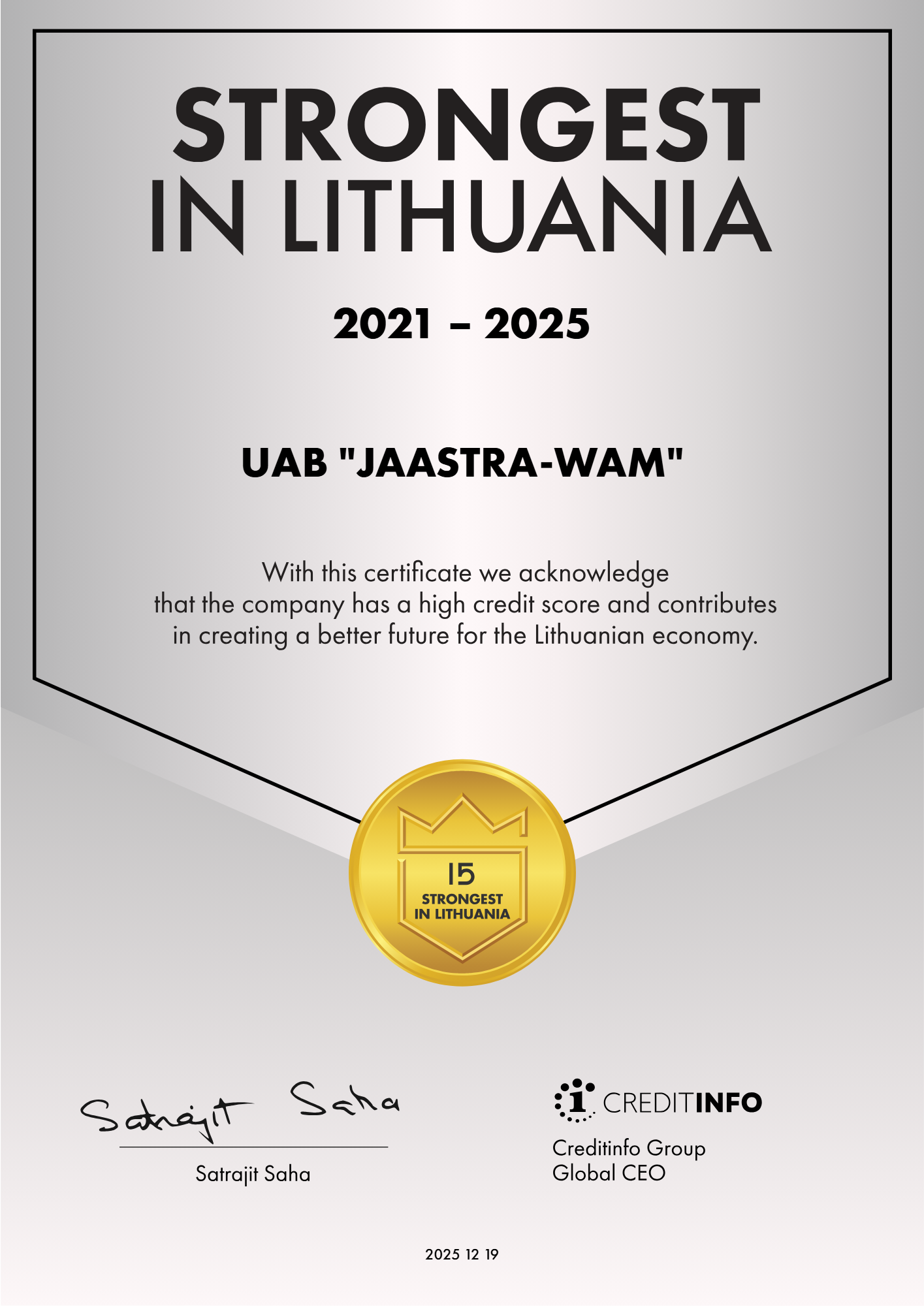 Our company exists on the basis of 100% Lithuania capital and is totally an independent business company.