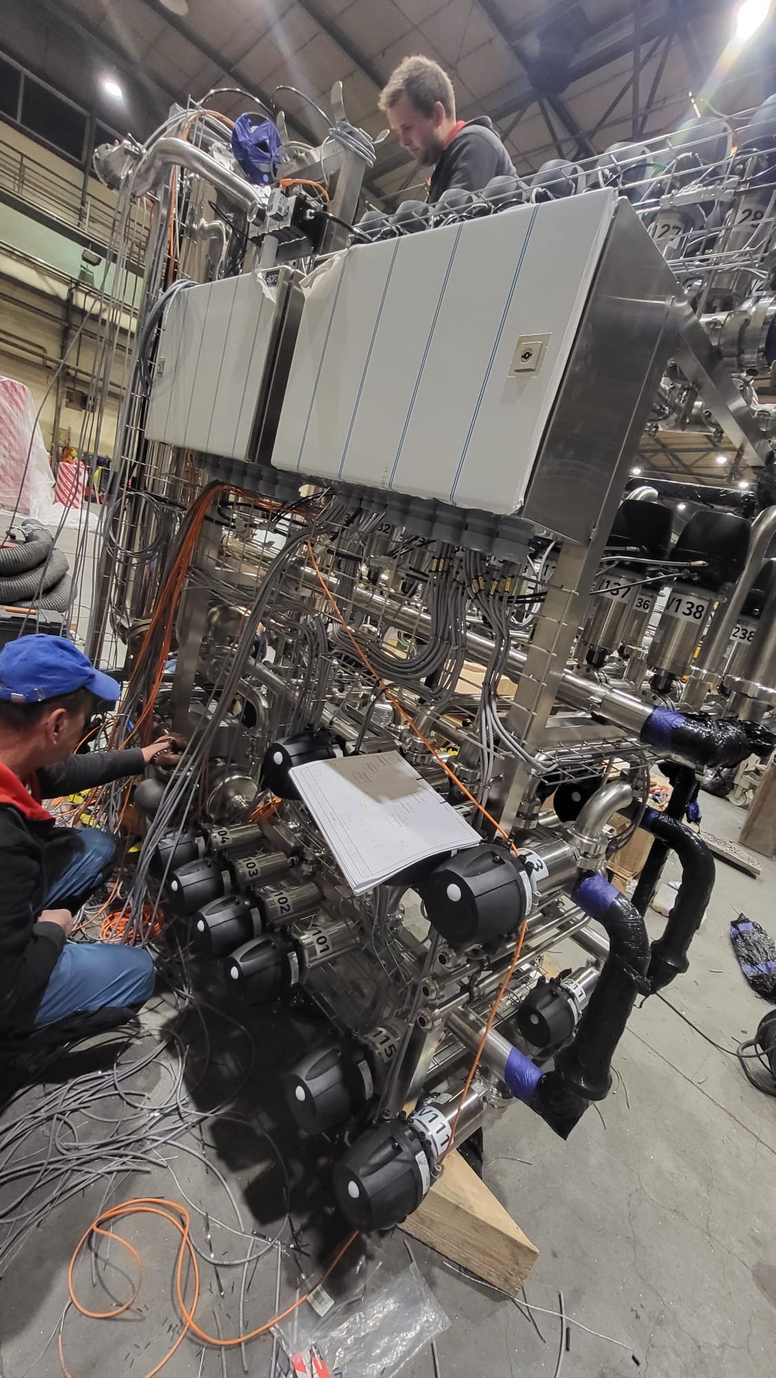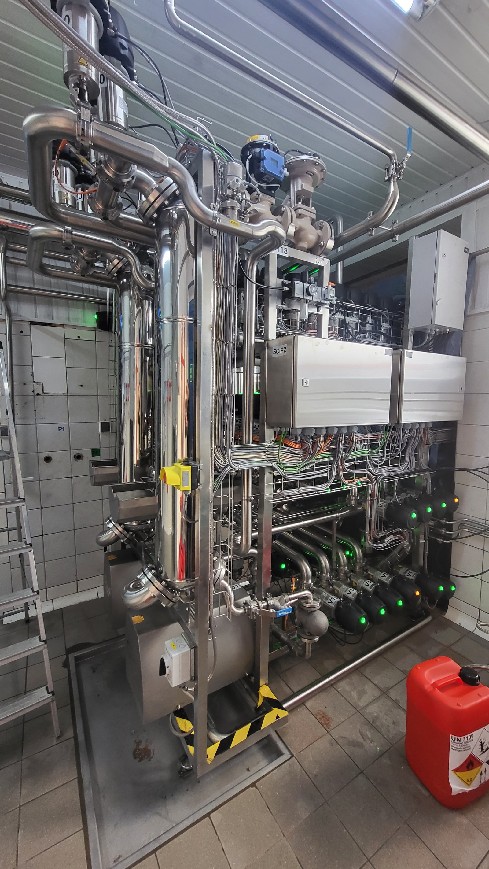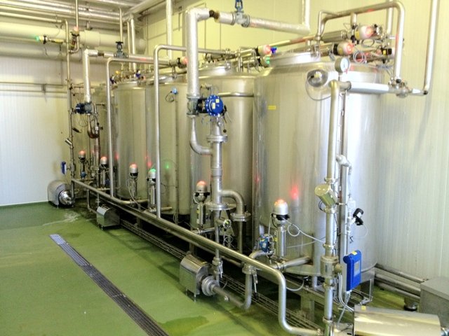 • The main cleaning CIP pump, the CIP return pump, automatic butterfly valves, flow sensors, pipe installations, inside the station.