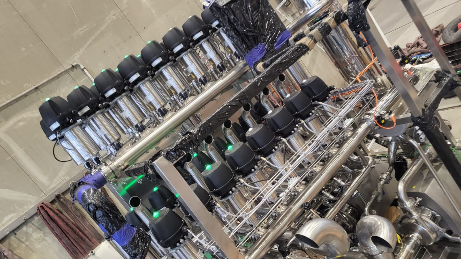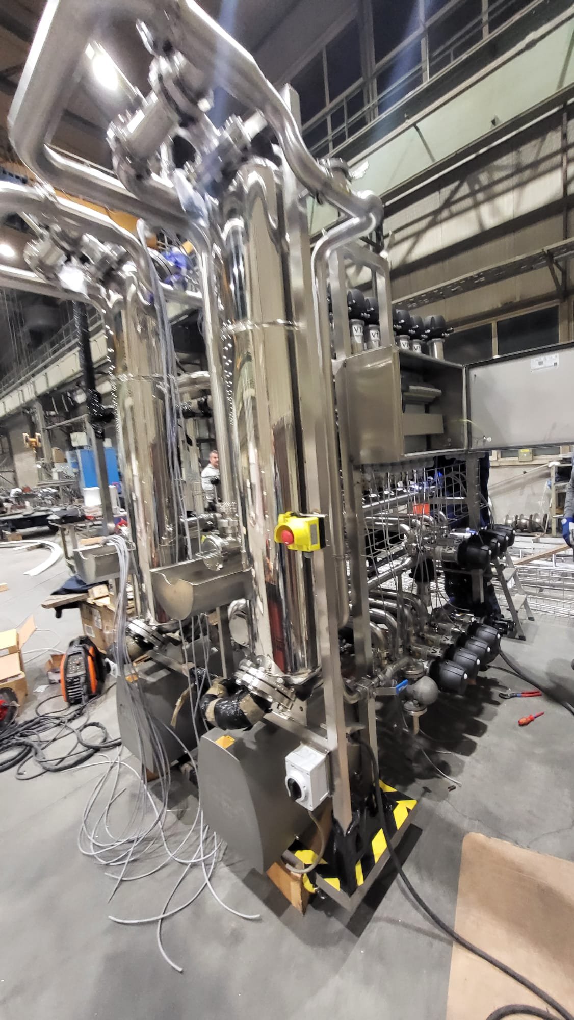 • Controller SIEMENS; Touchscreen control panel; Contactors and motor protection; Inverter; Stainless steel cabinets; Level sensors; Temperature sensors; Pressure sensors; Flowmeter; Flow sensor; Safety transmitter; Inductive sensors; Repair switches; Valve terminal; Power rails; Cable trays; Electric cables; Remote access; Air preparation system.