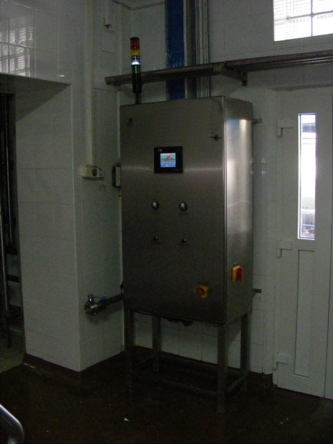 In the stainless steel box, the controller and all the other elements of controlling are placed, together with power circuits and pneumatics. On the front of the box, there is an additional manual panel TOUCH MULTIPANEL produced by the SIEMENS company and with its help an operator of the cleaning station chooses particular cleaning programmes and observes the progress of cleaning cycles. On the panel, cleaning processes carried out by the CIP station are visible.