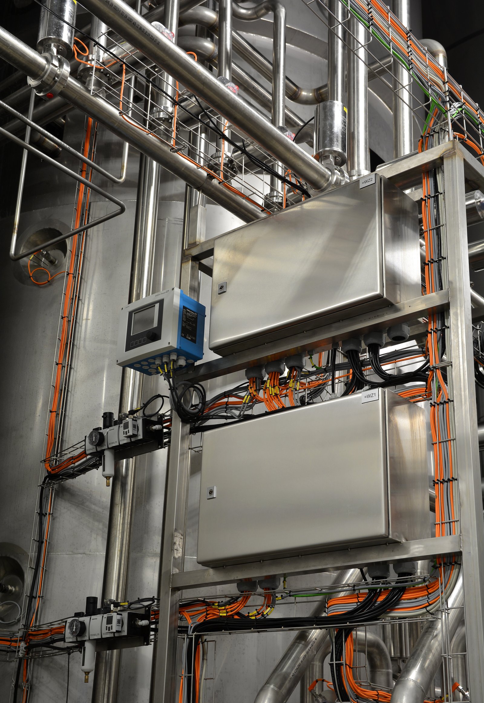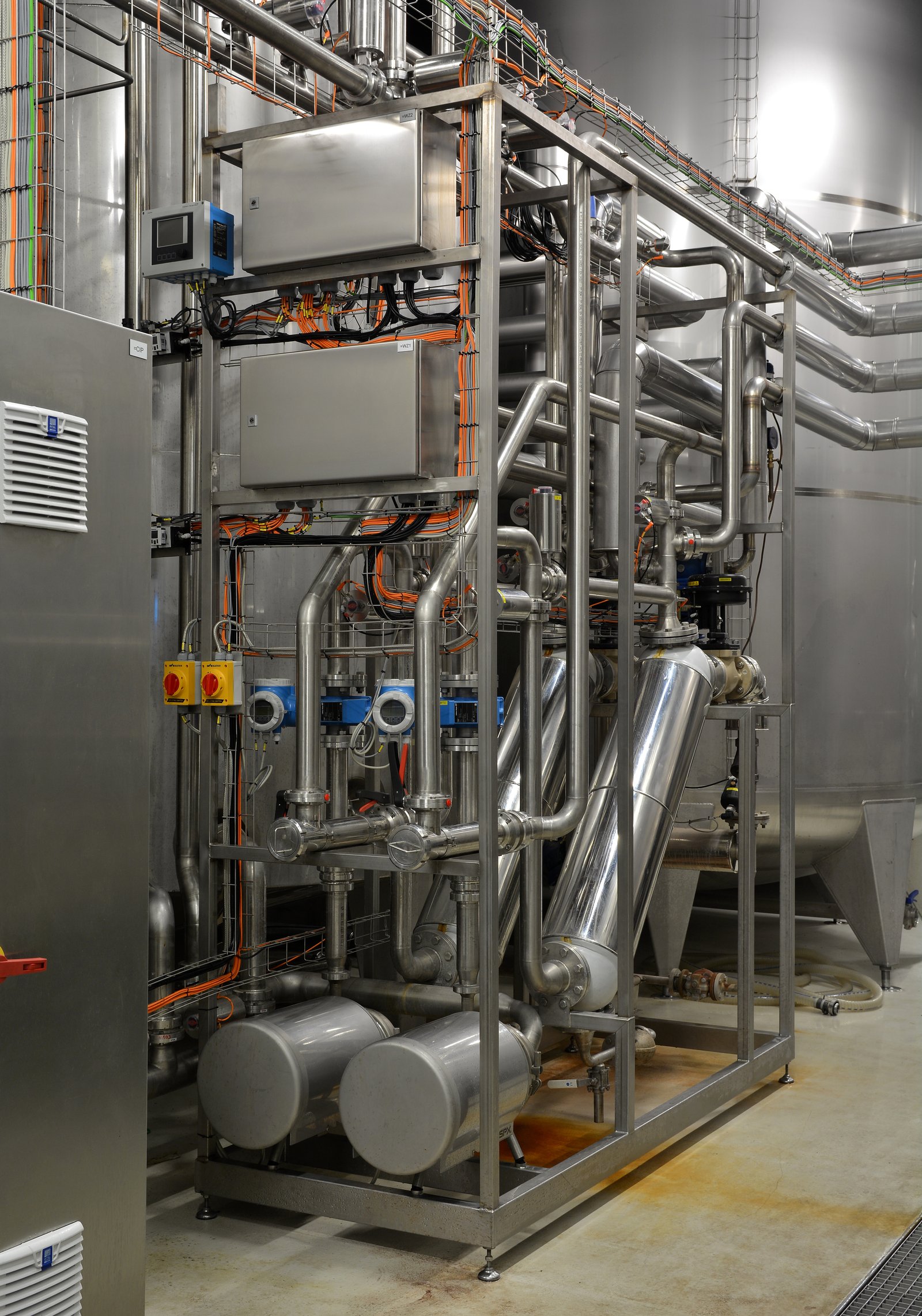 • Controller SIEMENS; Touchscreen control panel; Contactors and motor protection; Inverter; Stainless steel cabinets; Level sensors; Temperature sensors; Pressure sensors; Flowmeter; Flow sensor; Safety transmitter; Inductive sensors; Repair switches; Valve terminal; Power rails; Cable trays; Electric cables; Remote access; Air preparation system.